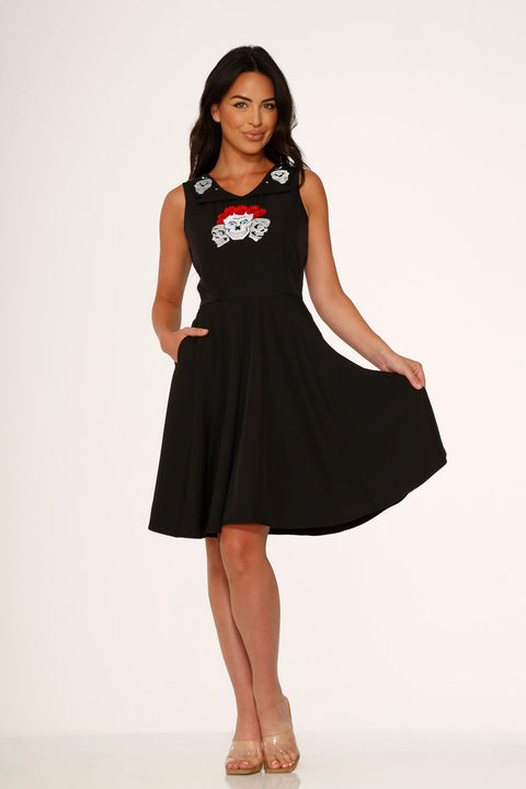 • Swingkleid mit Rosenschädelstickerei