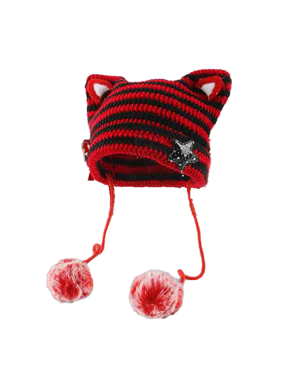 Hand Made Cat Ear Stripes Knitted Hat