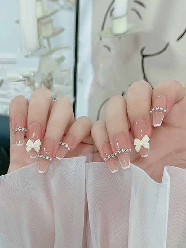 24pcs Rhinestone Bow Pattern Press On Nails