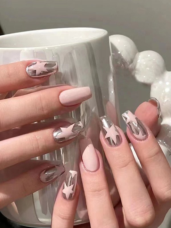 24pcs Metallic Star Pattern Press On Nails