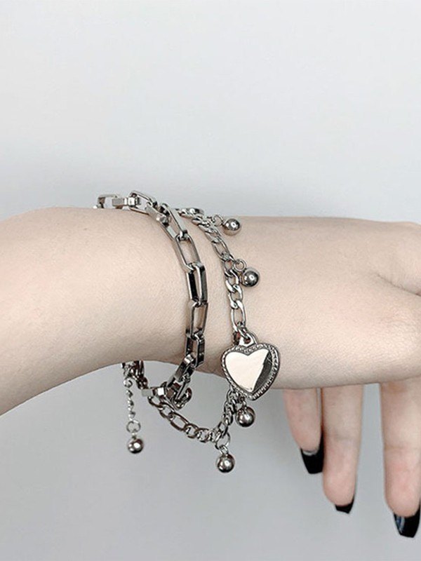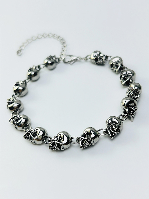 Chain Embellish Skull Chunky Pu Leather Bracelet