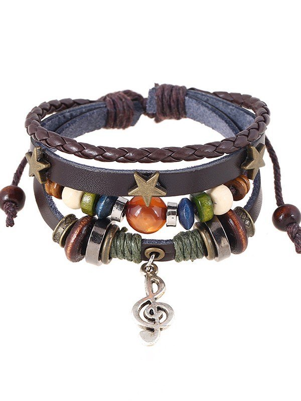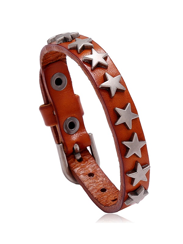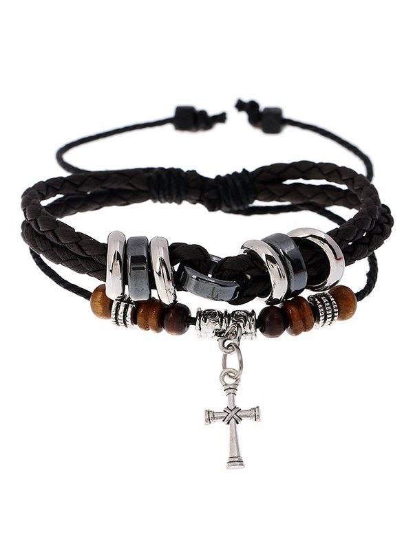 Men’s Cross Pattern Pu Leather Link Bracelet