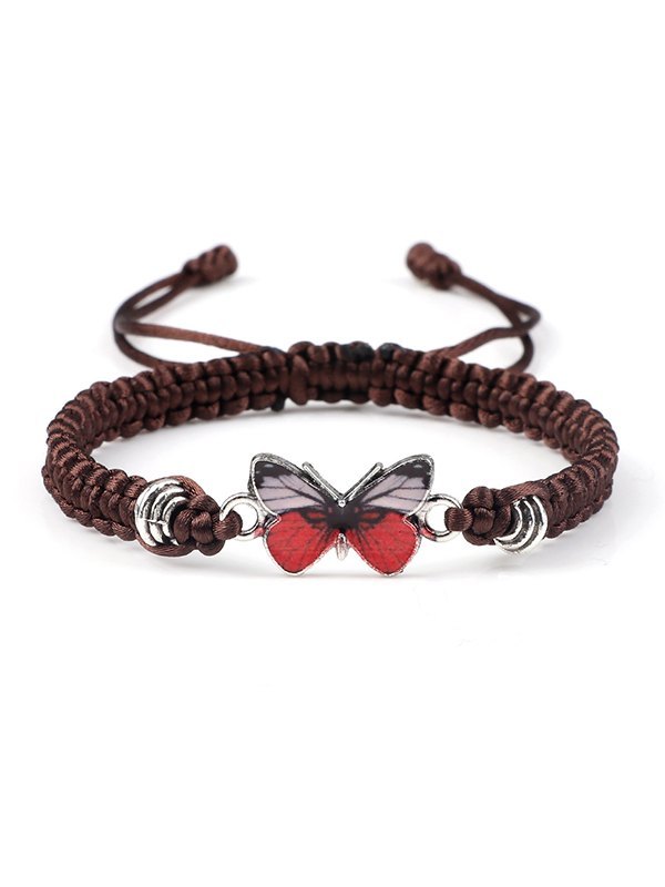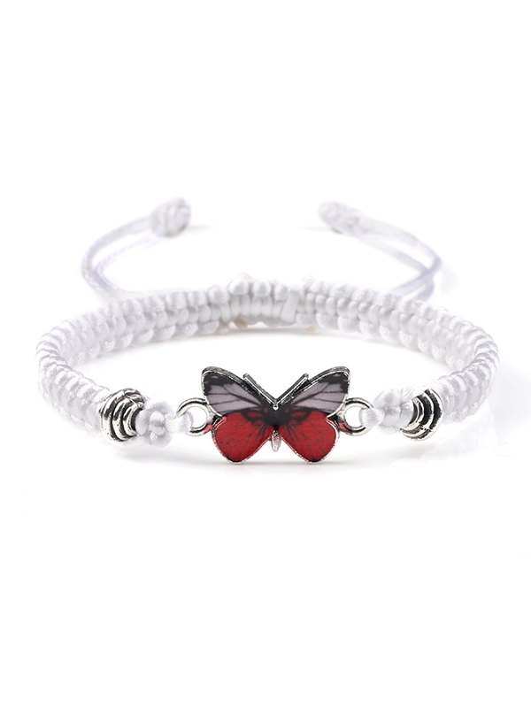 Vintage Butterfly Ceramic Beaded Braided Bracelet
