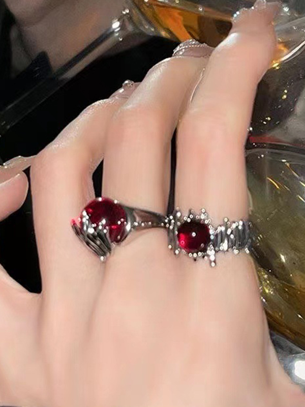 Asymmetrical Red Bead Open Ring