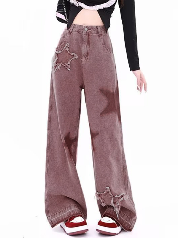 Vintage Star Print Embroidery Boyfriend Jeans