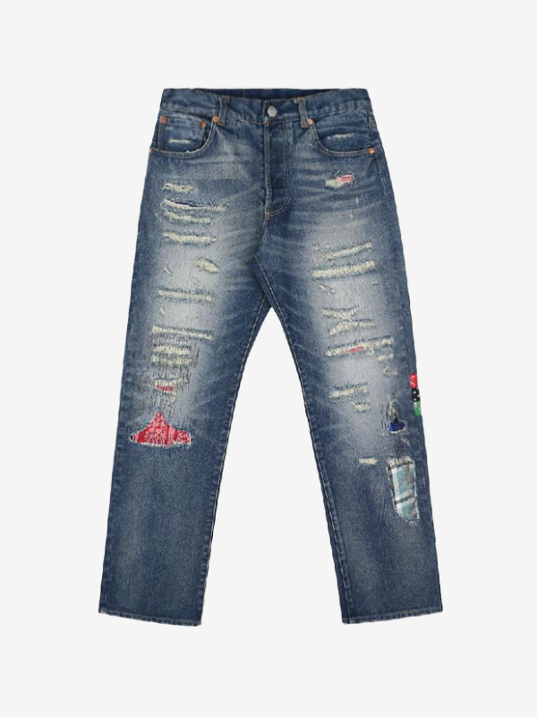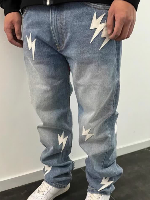 Men’s Patch Leather Lightning Loose Jeans