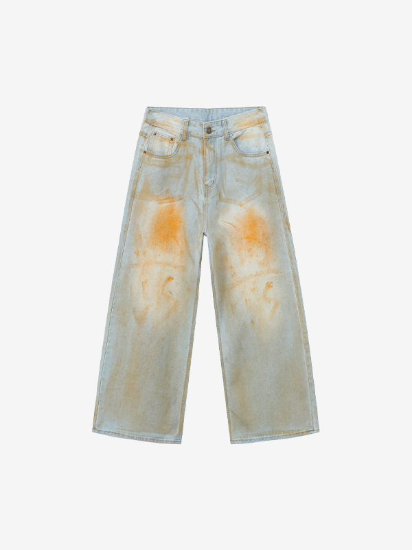 High Waist Straight Leg Washed Trousers Ripped Jeans