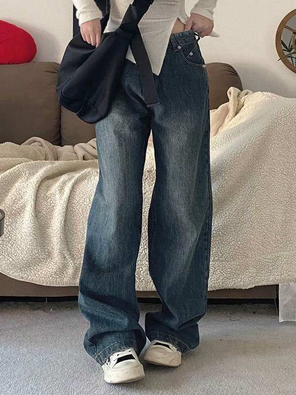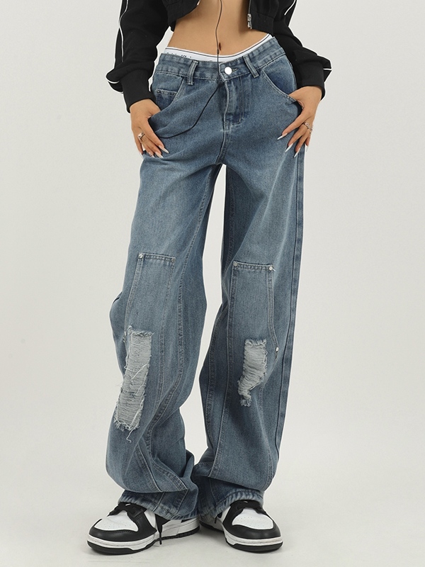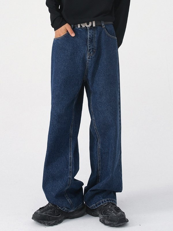 Men’s Fit Semi-Elastic Waist Straight-Leg Loose Jeans