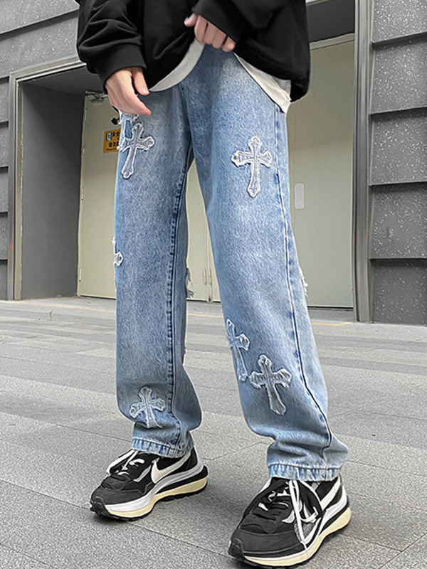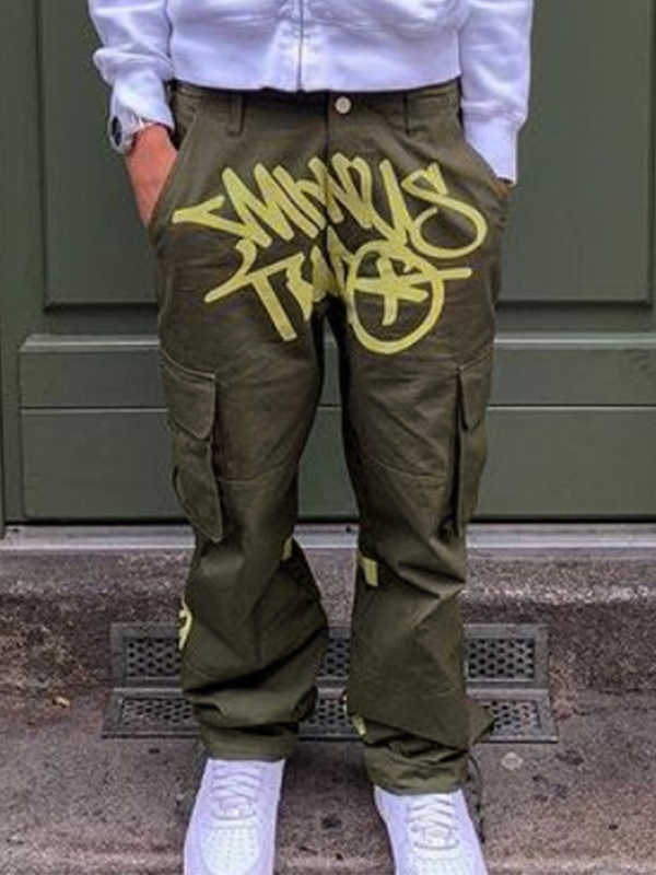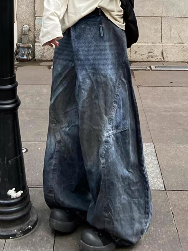 Men’s Washed Distressed Side Big Pocket Cargo Jeans