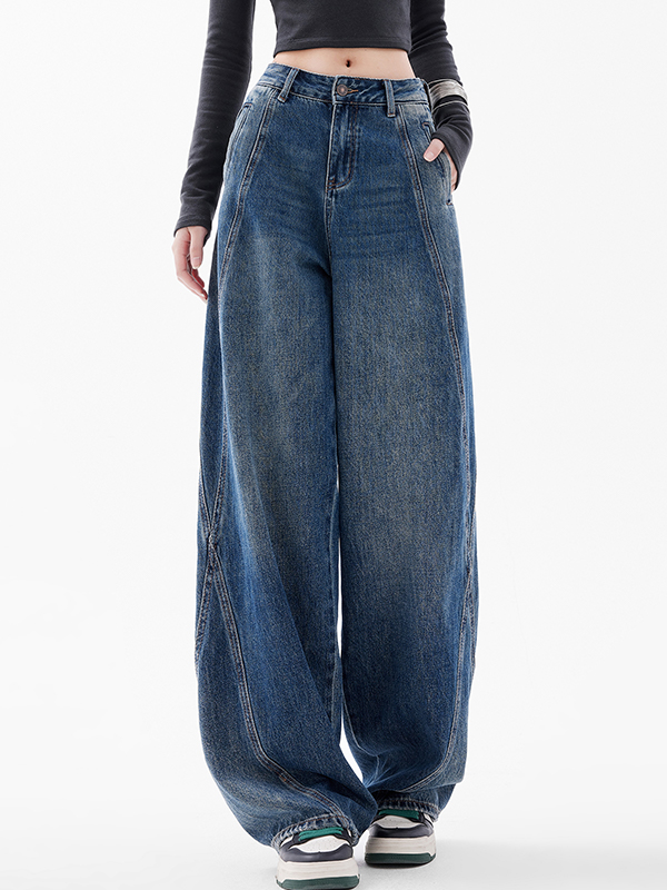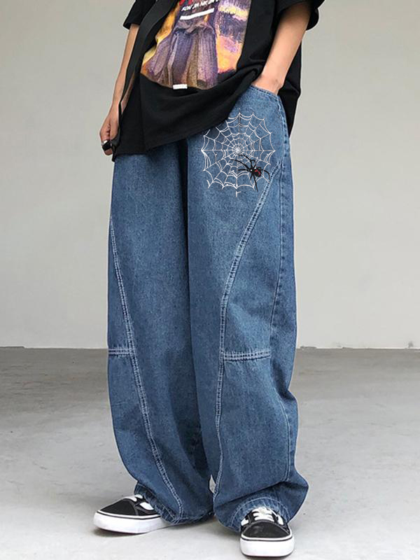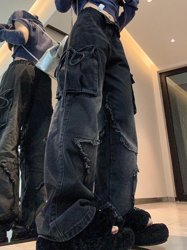 Hip Pop Multi Pocket Raw Trim Tie Up Cargo Jeans