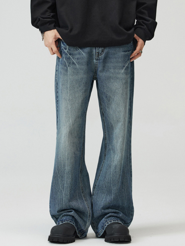 Retro Washed Distressed Multiple Pockets Cargo Jeans