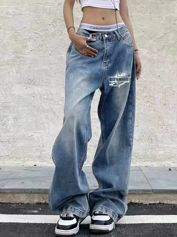 Men’s Hip Pop Letter Print Loose Jeans