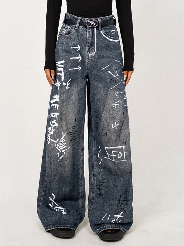Washed Print Mopping Boyfriend Jeans