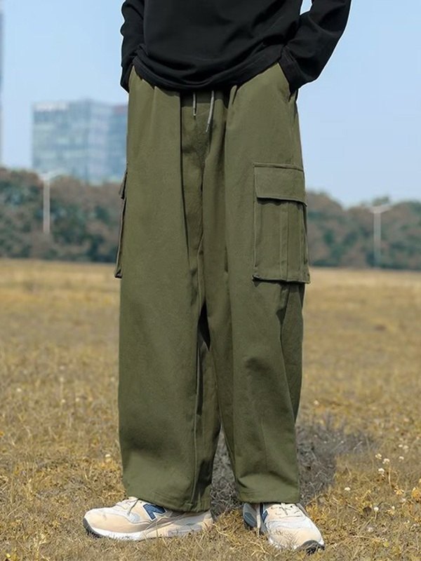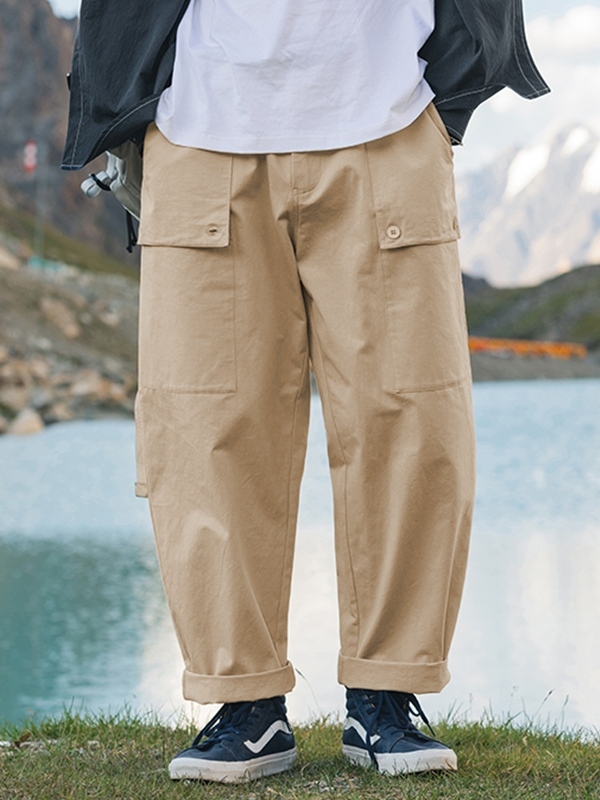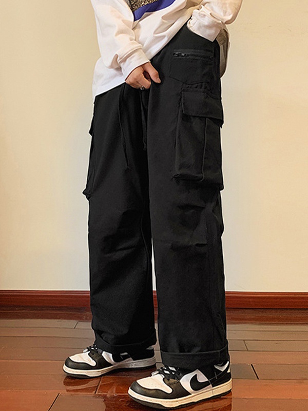 Men’s High Waist Wide Leg Casual Cuffed Cargo Pants