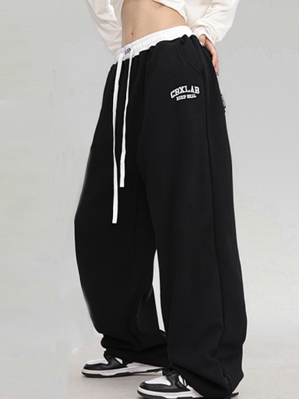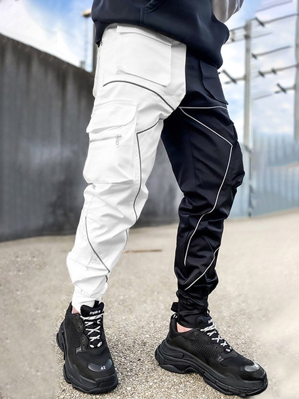 Men’s Solid Splice Bound Feet Wide Leg Pants