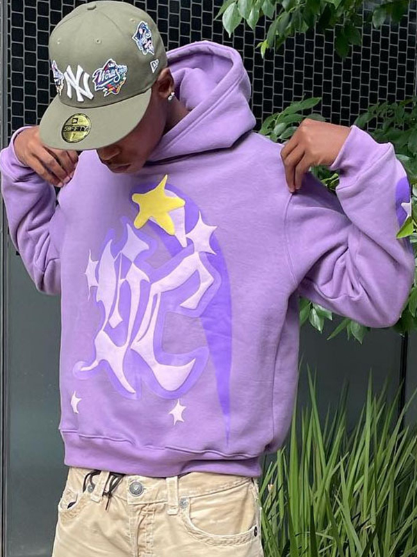 Men’s Star Lettering Oversized Long Sleeve Hoodie