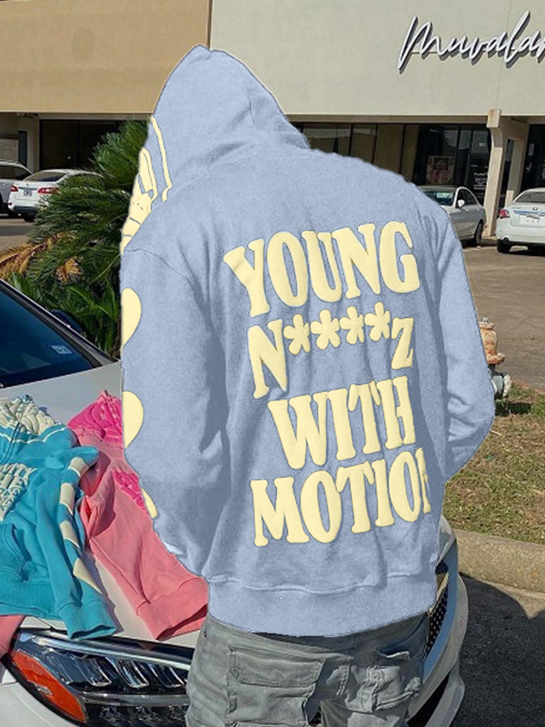 Men’s Hip Pop Letter Print Full Zip Oversized Hoodie