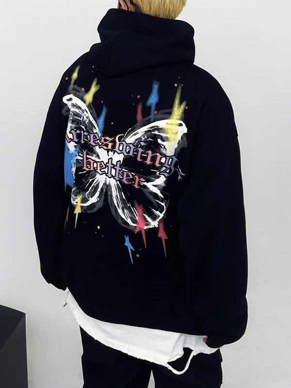 Men’s Hip Pop Letter Heart Print Oversized Hoodie