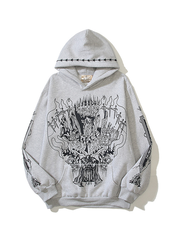 Men’ Vintage Star Cross Print Zip Up Oversized Hoodie