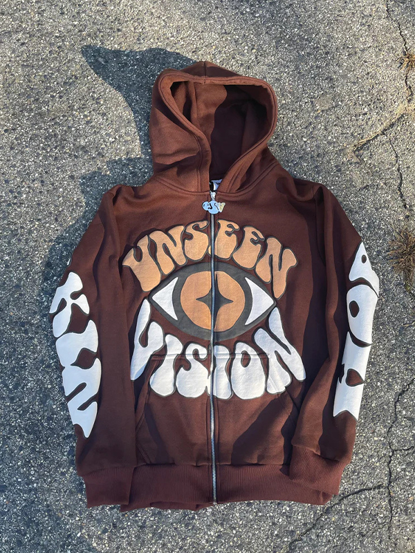 Street Blurred Skull Print Zip Up Oversized Hoodie