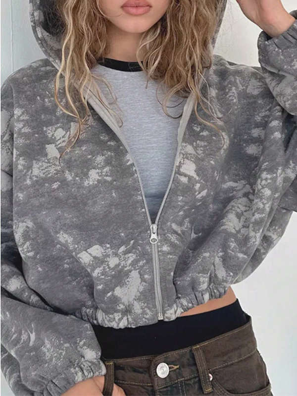 Embroidered Zip Up Cardigan Loose Hoodie
