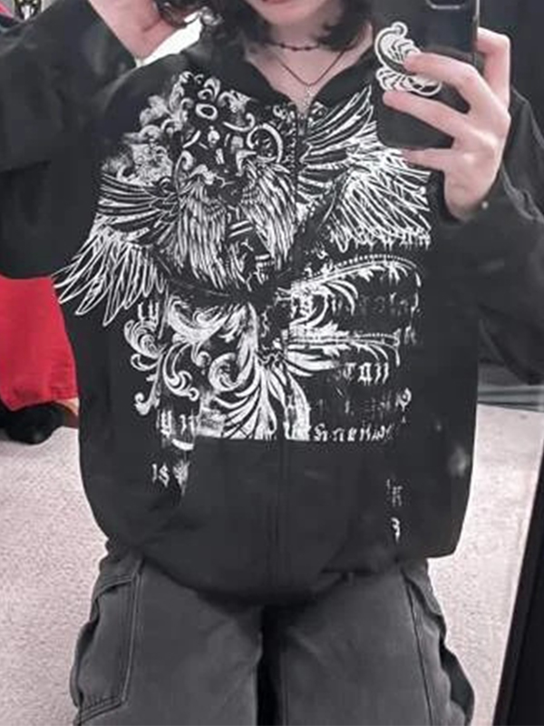 Eagle print loose baggy hoodie