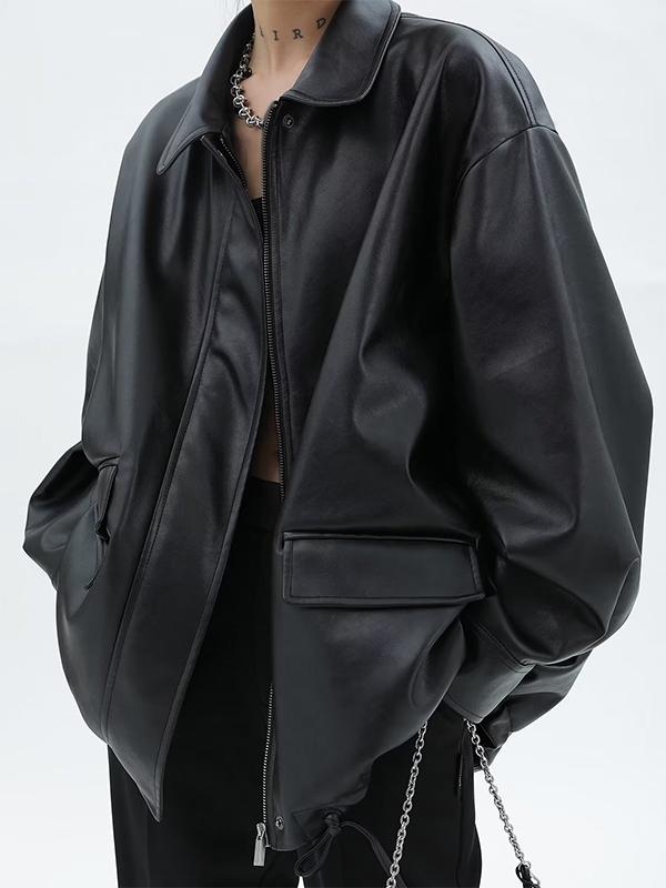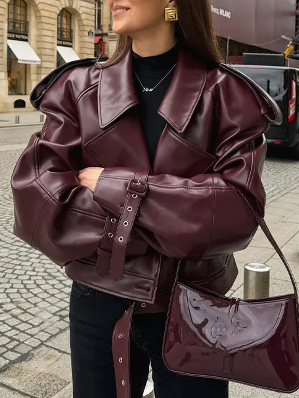 Pu Lapel Adjustable Cuffs Retro Motorcycle Jacket