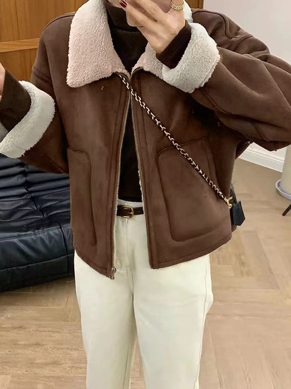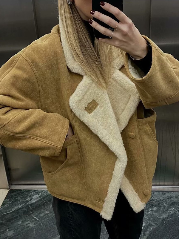 Vintage Suede Teddy Lined Lapel Neck Jacket