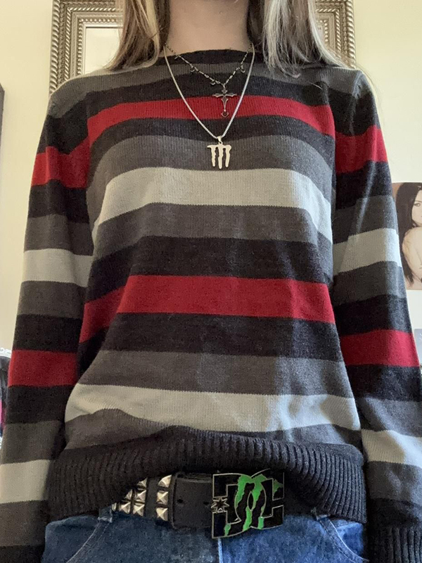 Retro Stripe Oversized Long Sleeve Sweaters