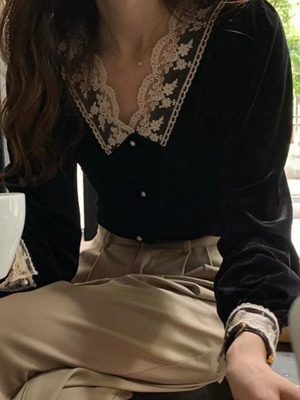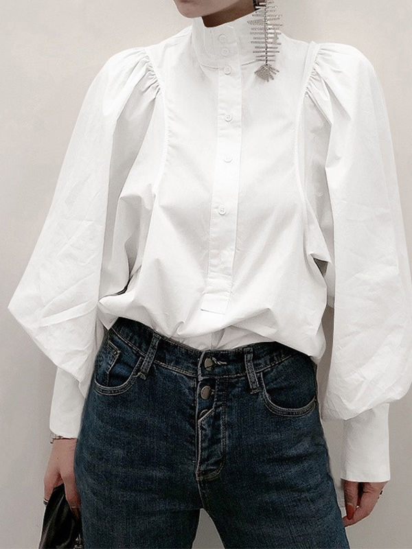 Plain Lantern Sleeve Loose Long Sleeves Shirts