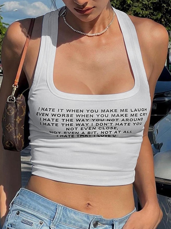 Letter Print Navel Bare Slim Fit Short Tank Top