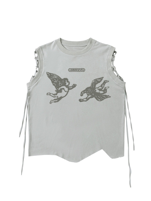 Vintage Print Seam Detail Ribbed Long Sleeve Knit
