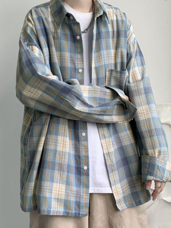 Men’s Vintage Distressed Plaid Long Sleeve Blouse