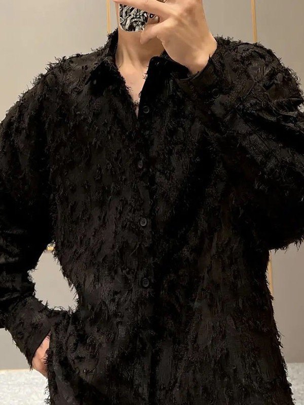 Men’s Fuzzy Long Sleeve Button Down Shirt