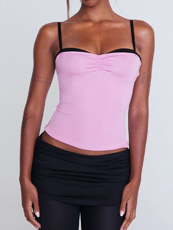 Clashing Colours Hanging Neck Lace Up Halter Vest