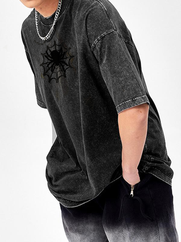 Men’S Spider Print Washed Oversized Short Sleeve Tee