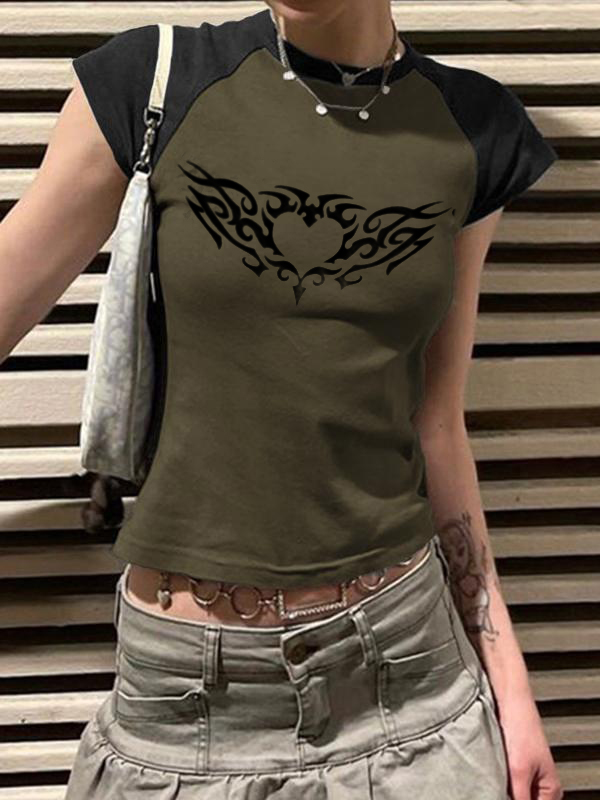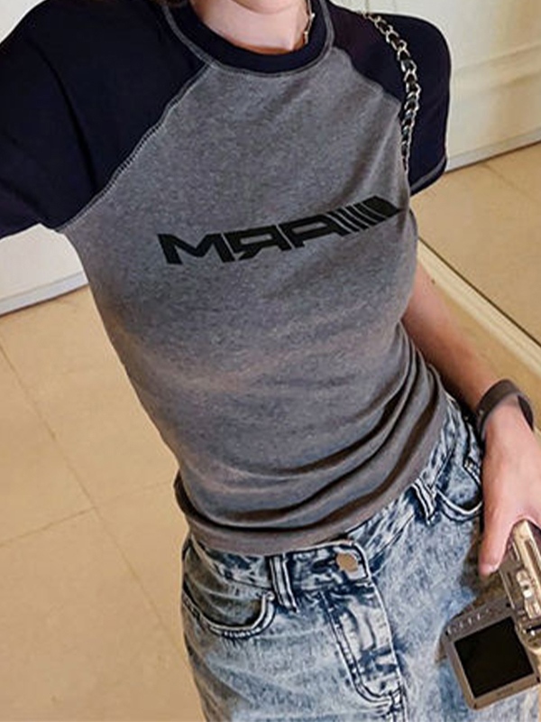 Raglan Contrast Color Slim Short Sleeve Tee
