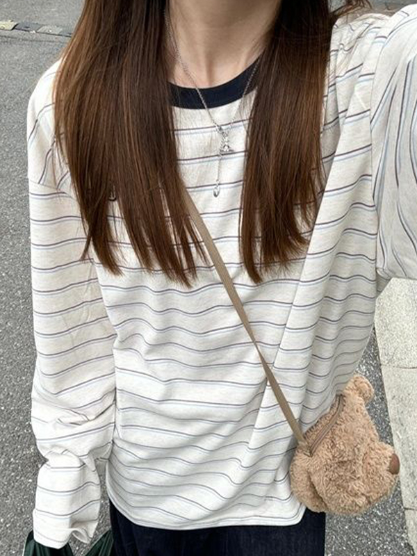 Stripe Print Oversized Long Sleeves Tee