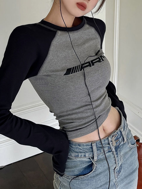 Raglan Contrast Color Slim Long Sleeve Tee