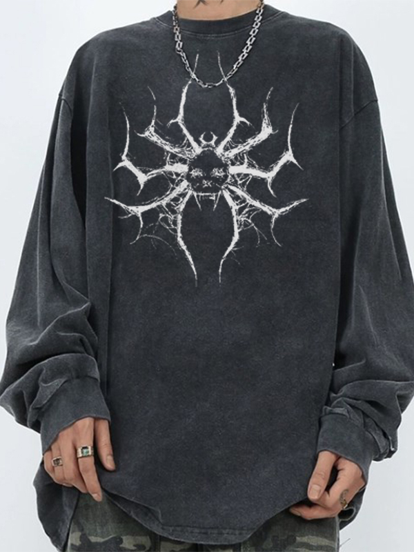 Spider Print Loose Casual Black Long Sleeves Tee