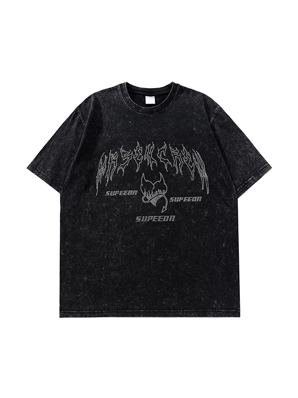 Little Devil Skull Dark Style Print Short Sleeves