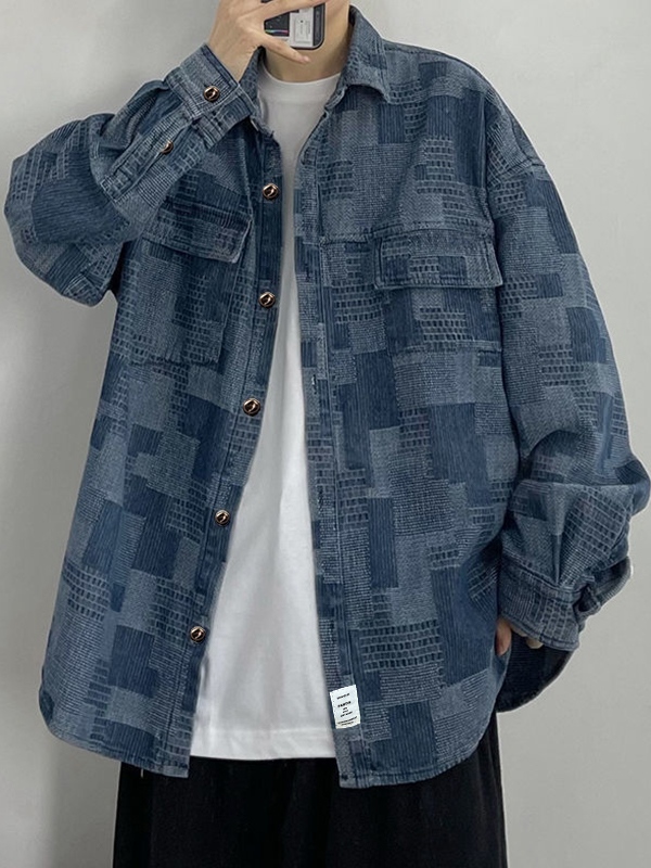 Men’s Vintage Distressed Plaid Long Sleeve Blouse