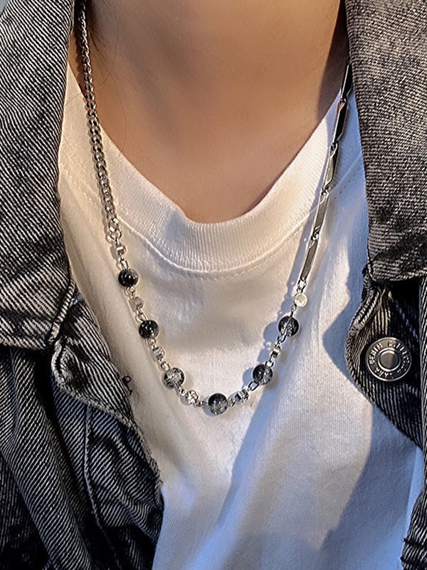 Men’s Titanium Steel Cracked bead Splice Necklace