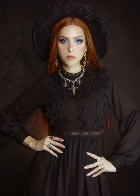 Das Agatha-Kleid ist ein unverzichtbares Basic für deine dunkle Cottagecore-Garderobe. Dieses Boho-Kleid im Hexenstil ist perfekt für die Seele eines Verstorbenen. Leicht, Midi-Länge, tailliert, mit Reißverschluss hinten und Ballonärmeln. Nutze die untenstehende Größentabelle, um deine empfohlene Größe zu finden. Der Taillenbereich ist nicht sehr dehnbar. Model Lauren ist 1,52 m groß und trägt Größe XS.