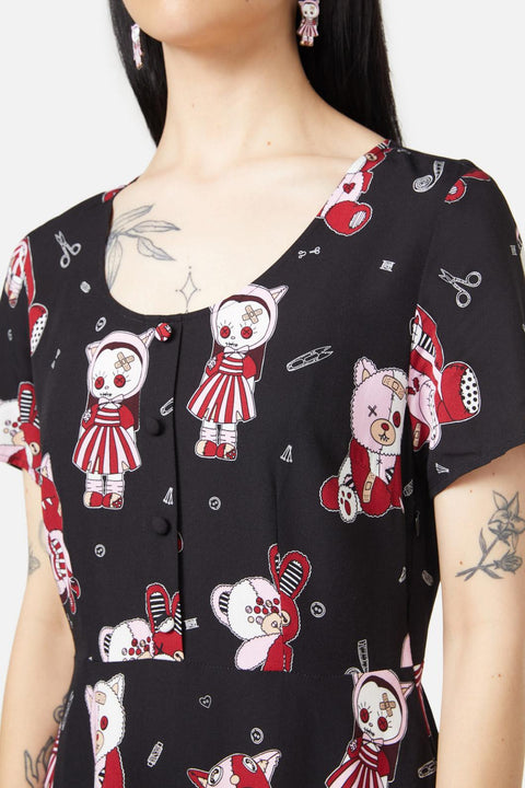 Ein verspieltes Grafikkleid mit einem Allover-Print von „Sew Much Fun, entworfen für eine entspannte und bequeme Passform.