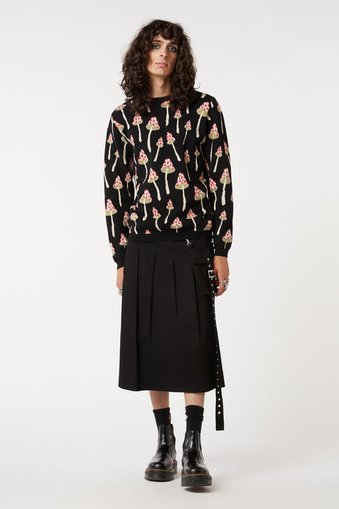 Lange Ärmel Rundhalsausschnitt Kastenförmiger Schnitt Lässige Passform Individuelles Strickmuster „Shroom Cap“ Aus weicher Baumwolle In Schwarz erhältlich Material&Pflege: 100 % Baumwolle, schonende Handwäsche kalt, nicht bleichen oder einweichen, nicht auswringen oder schleudern, in Form bringen und liegend trocknen, bei Bedarf kühl bügeln. Produktcode: DBFV035416 W23