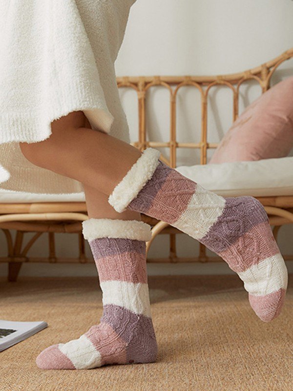 Be the first to review “Color Block Striped Fleece Lined Home Socks”