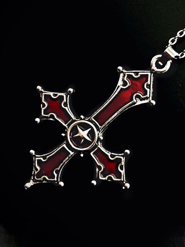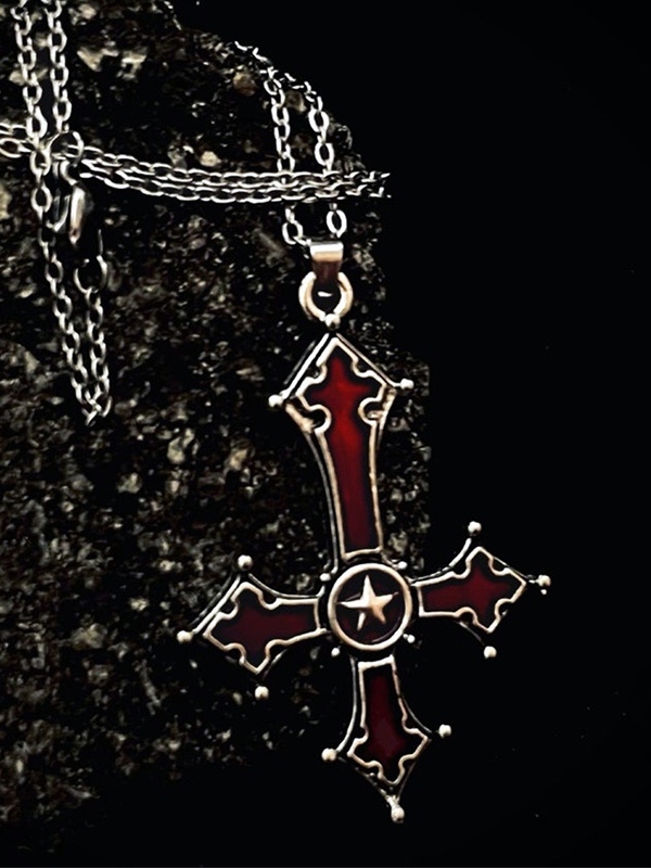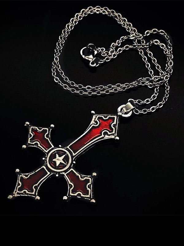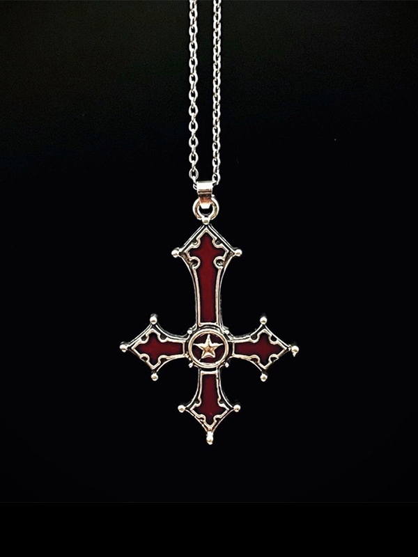 Blood Red Inverted Cross Pendant Necklace