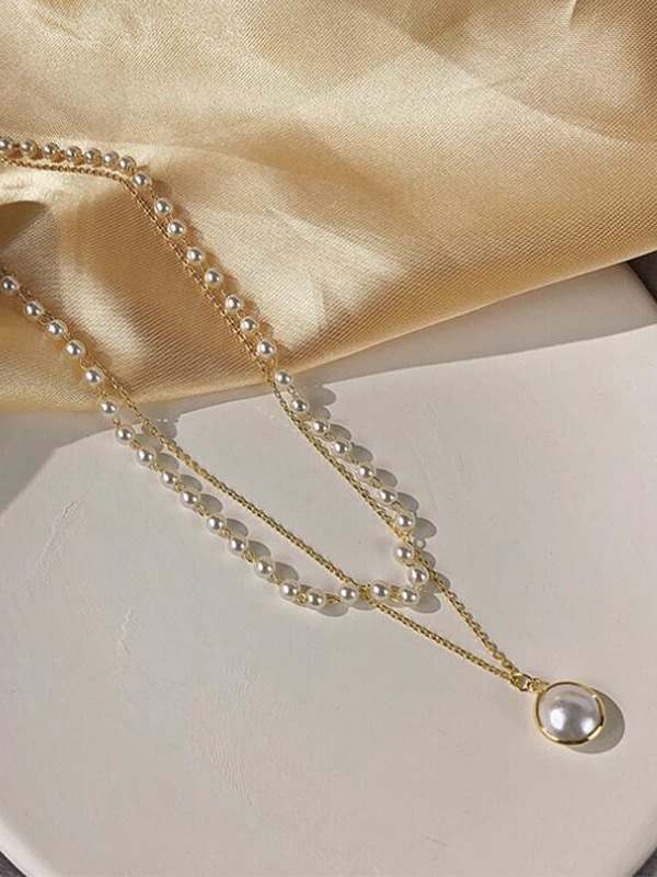 Be the first to review “Double Layered Faux Pearl Necklace”