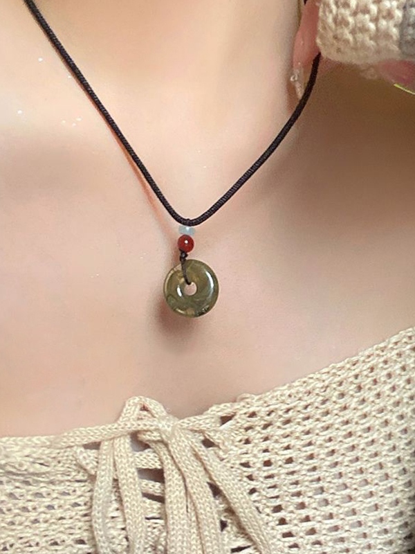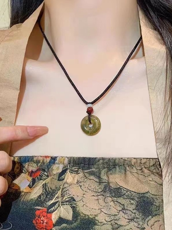 Hollow Out Jade Pendant Braided Rope Necklace